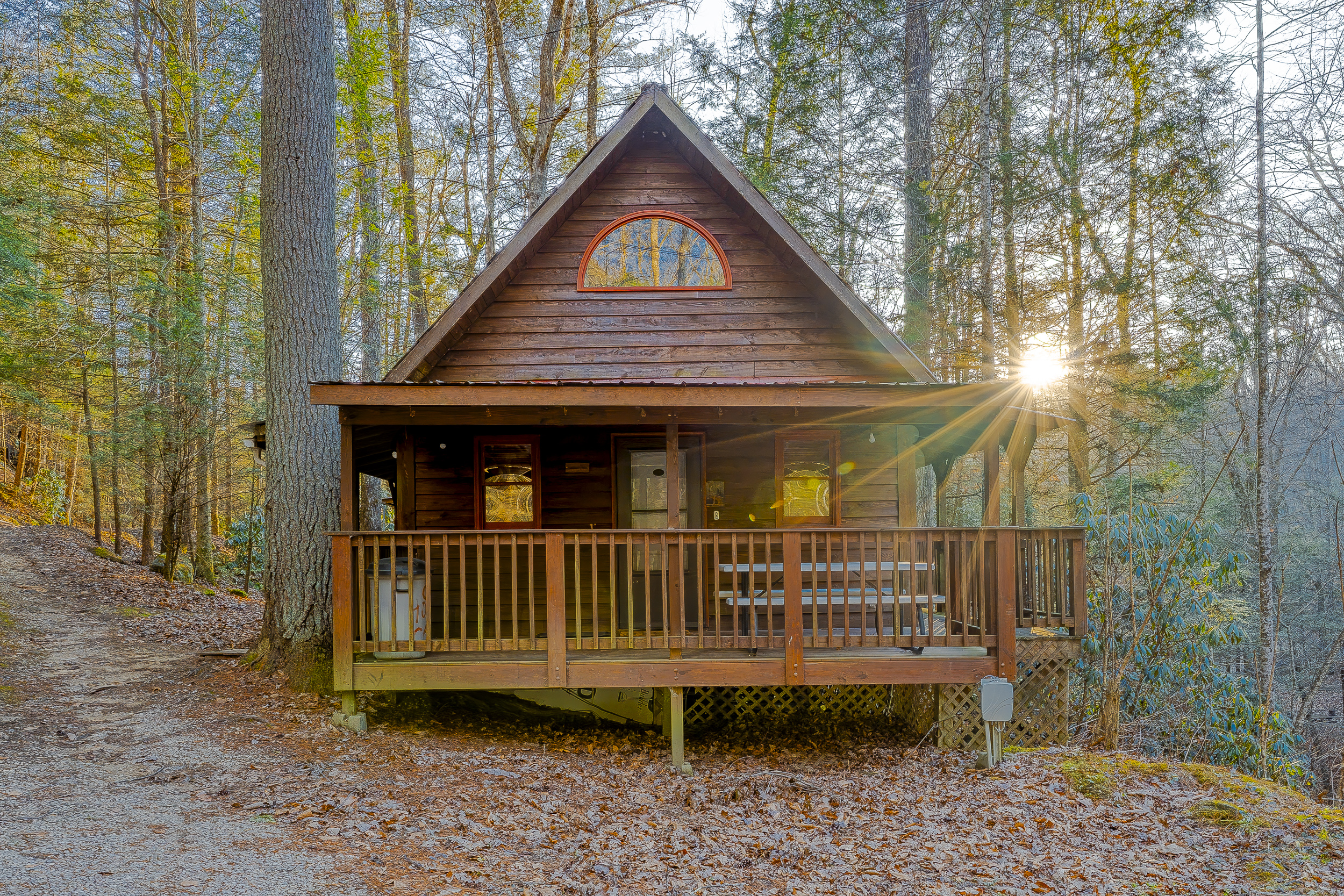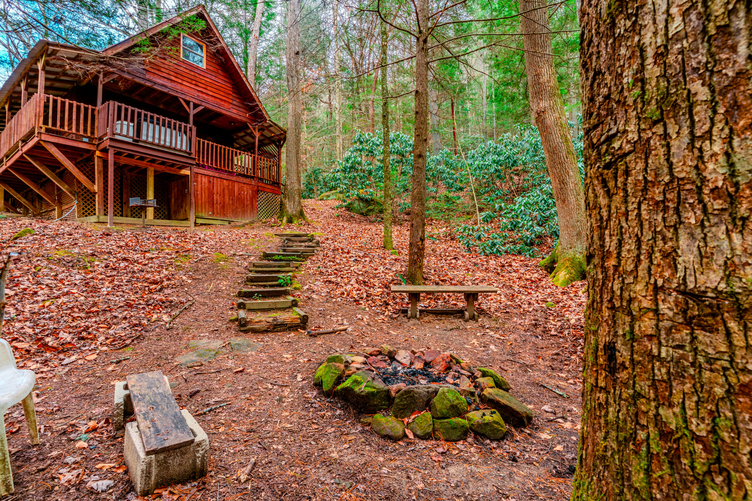 Enjoy all the views with the wrap around deck wrap around deck. Enter the back deck area with and soak in a private hot tub, and become one with the nature sandstone, sounds of the brook and all the nature.